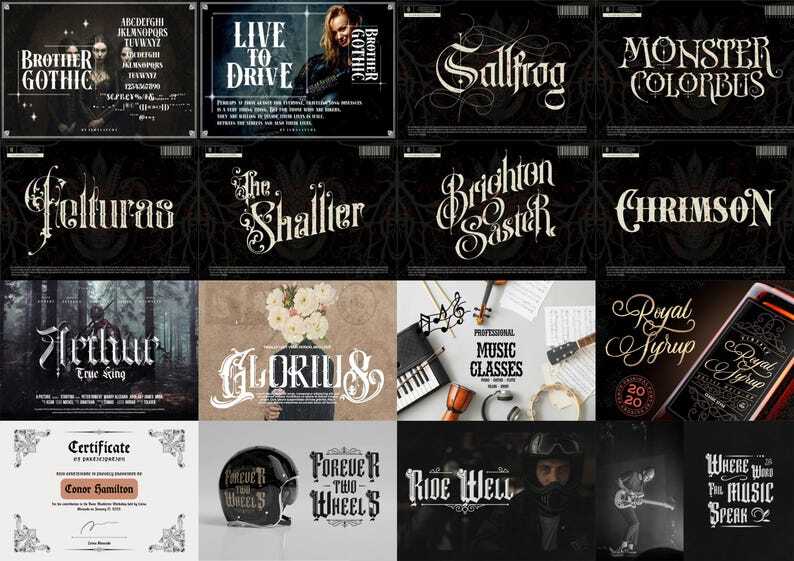 With hundreds of fonts in hundreds of different styles, themes and characters, you'll find a font to suit any project. With endless possibilities for logos, banners, websites, cards and more, this collection helps you unleash your creativity and make your projects stand out.